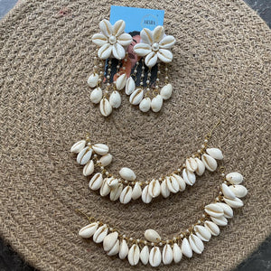 These fabric handmade earrings are a unique and stylish accessory to add to your collection. Simple elegant u can wear Haldi , Mehndi nd its light weight earrings with Damni style Mangtikka!