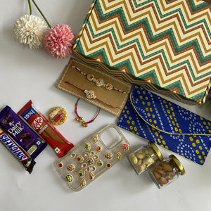 A Bhaiya Bhabhi Rakhi hamper is a gift set traditionally given to a brother and sister-in-law (bhabhi) on Raksha Bandhan. These hampers typically include a Rakhi for the brother, a Lumba (or Bhabhi Rakhi) for the sister-in-law, and often include sweets, dry fruits, personalized items, or other small gifts to celebrate the occasion.💕