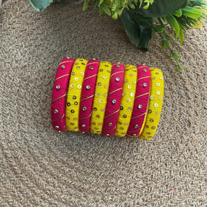 pink and Yellow bangels with kundan nd gotapatti work, perfect for a wedding nd other tradition.