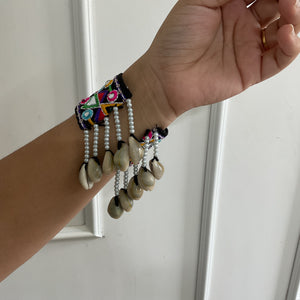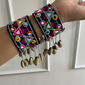 Our Rishvi handcuff made with thread work nd mirror work along with sides she'll detailing And it's adjustable So u can adjust according to your size nd it's come with one pair 😍