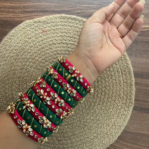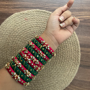 pink and green bangels with kundan nd gotapatti work, perfect for a wedding nd other tradition.