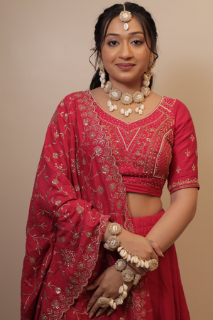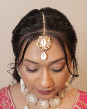 Make a bold yet elegant statement with this handcrafted cowrie shell jewelry set, designed to complement your traditional outfits with a rich ethnic charm. Featuring intricate pearl work and natural shells, this set adds a perfect blend of royalty and earthy beauty to your festive look.